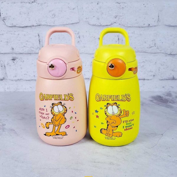 فلاسک طرح گارفیلد ساخت کشور چین که از استیل 316 برخوردار است و گنجایش آن 400میلی لیتر میباشد که زبانه ی آن به صورت سرشیشه شیر و داخل آن نیز دارای نی میباشد که قابلیت استفاده برای کودکان را راحتر میکند.